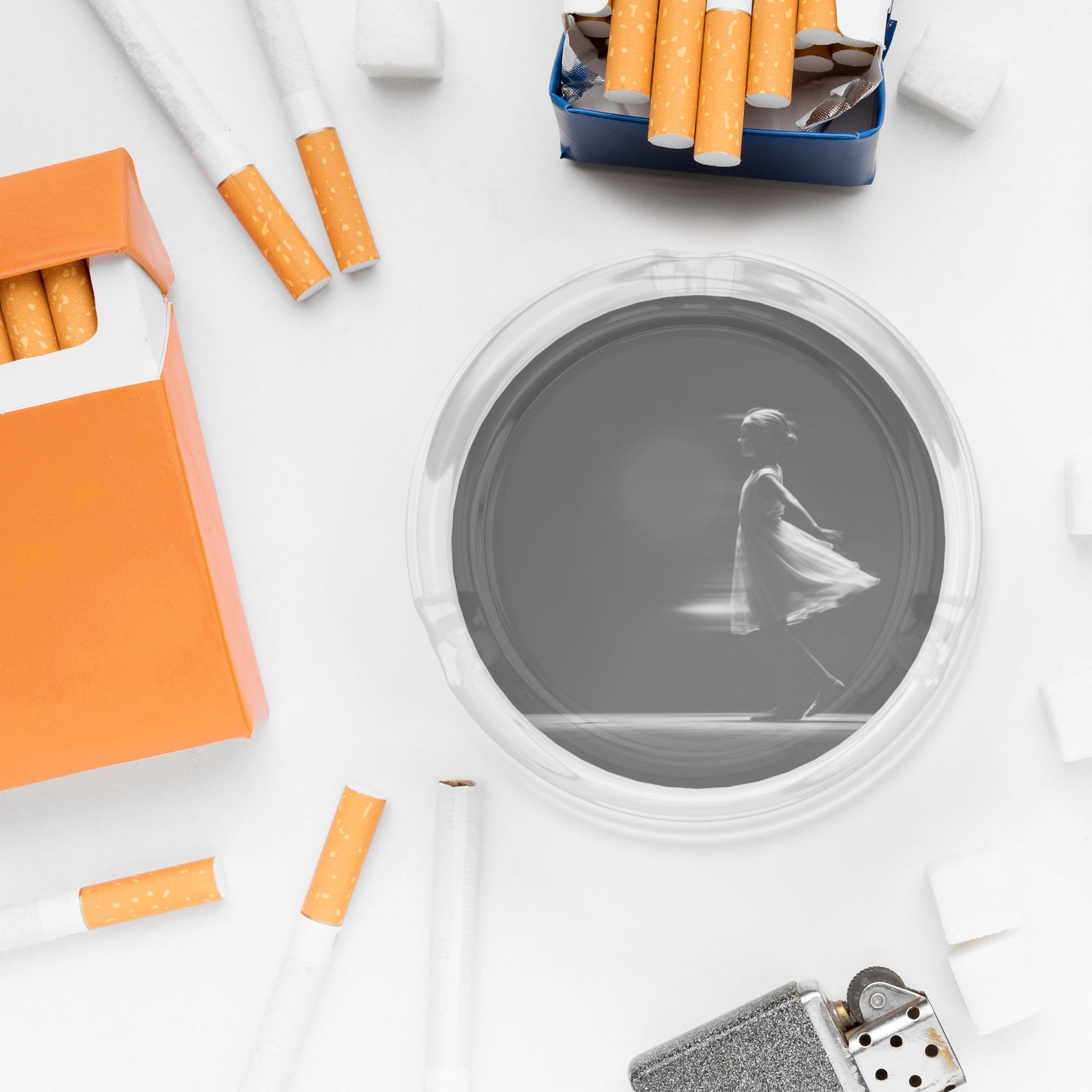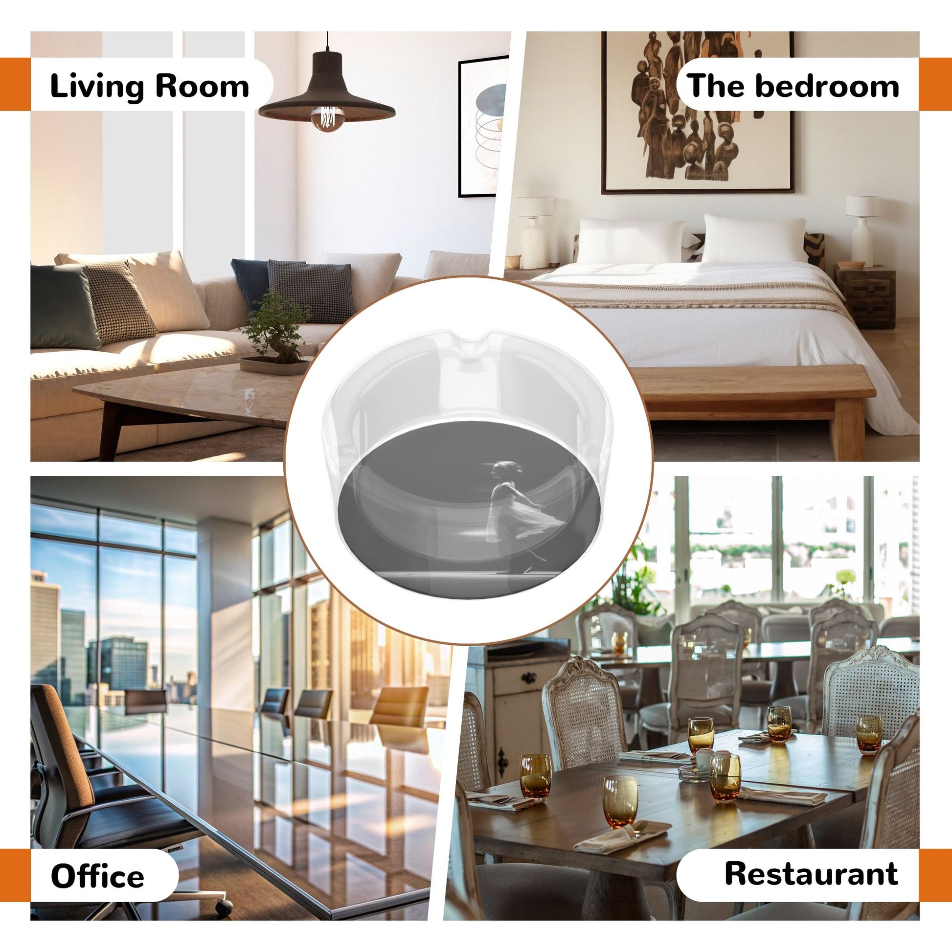 Art Silhouette Round Glass Ashtray, Creative Home Decor Ashtray (Diameter 8.5cm)