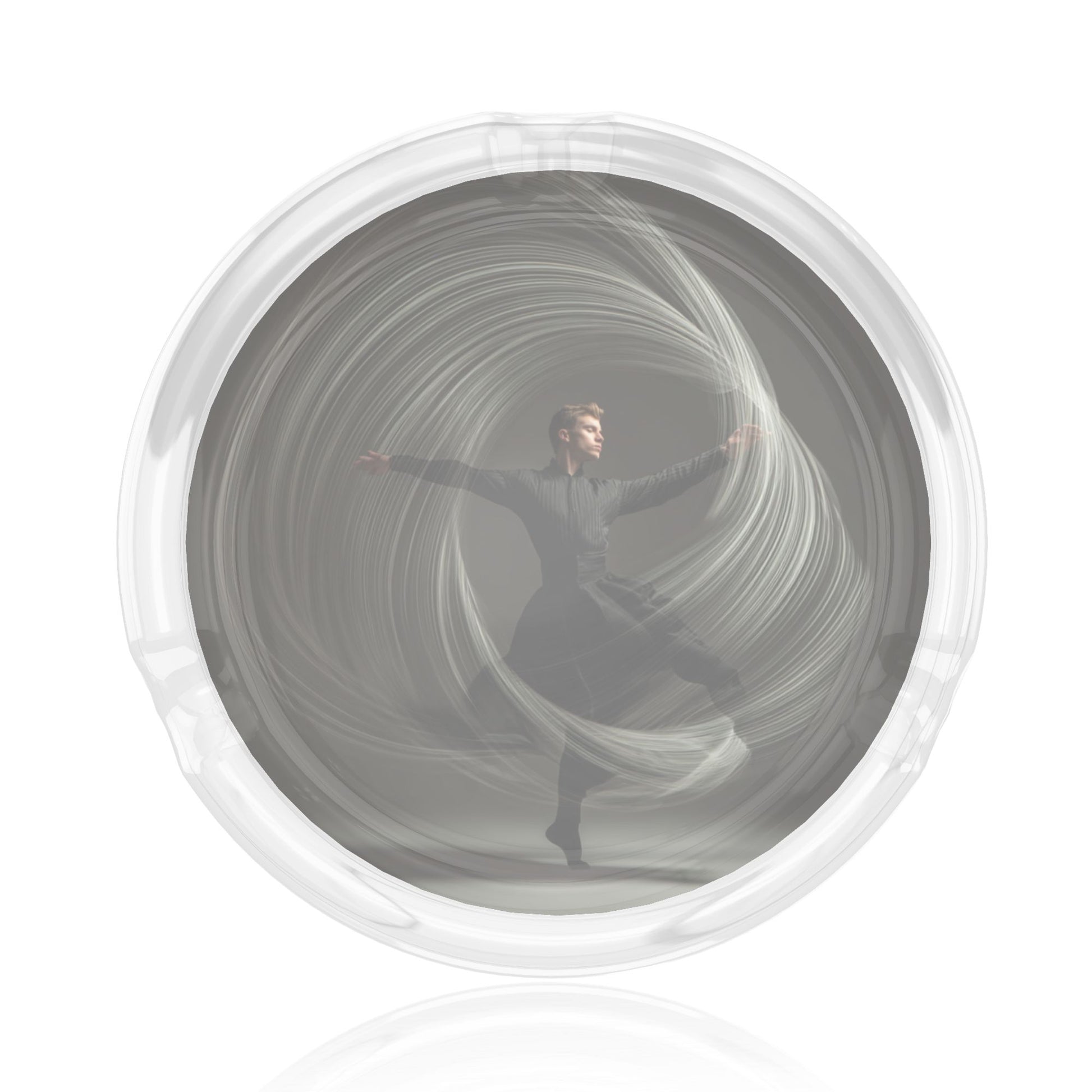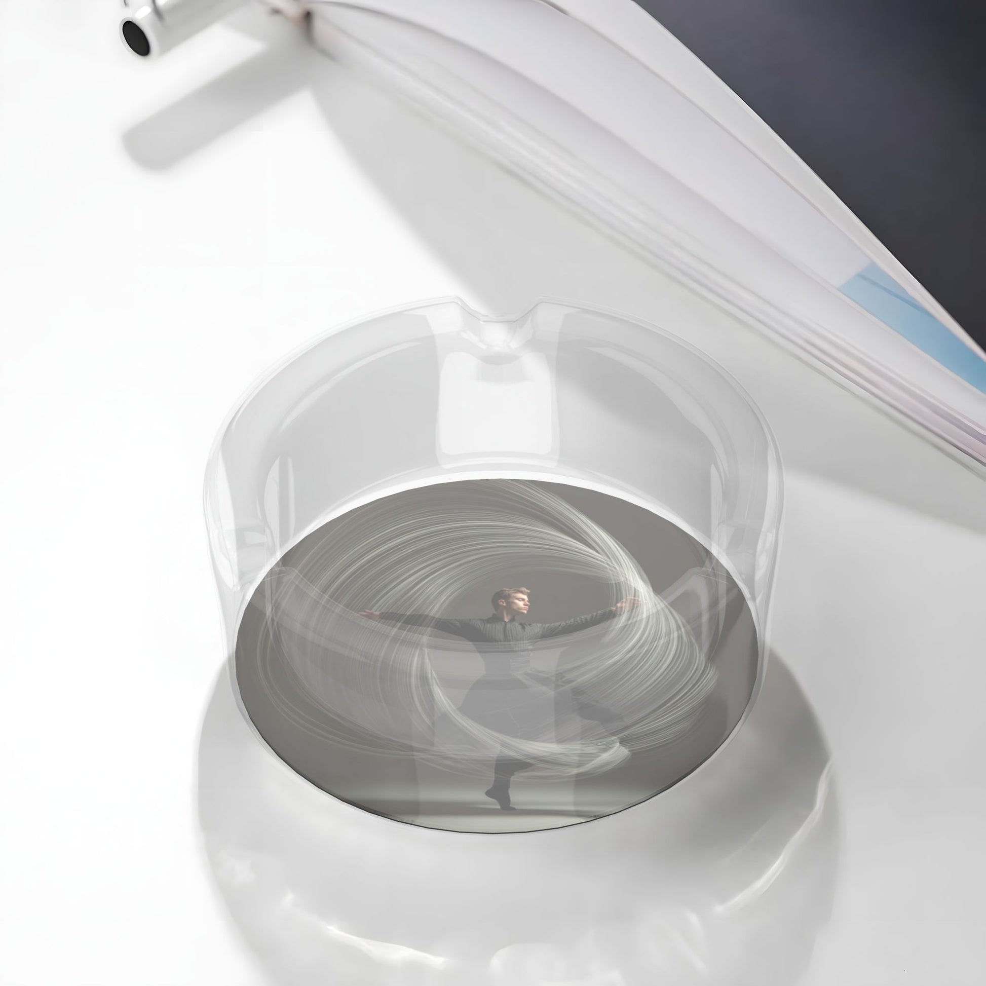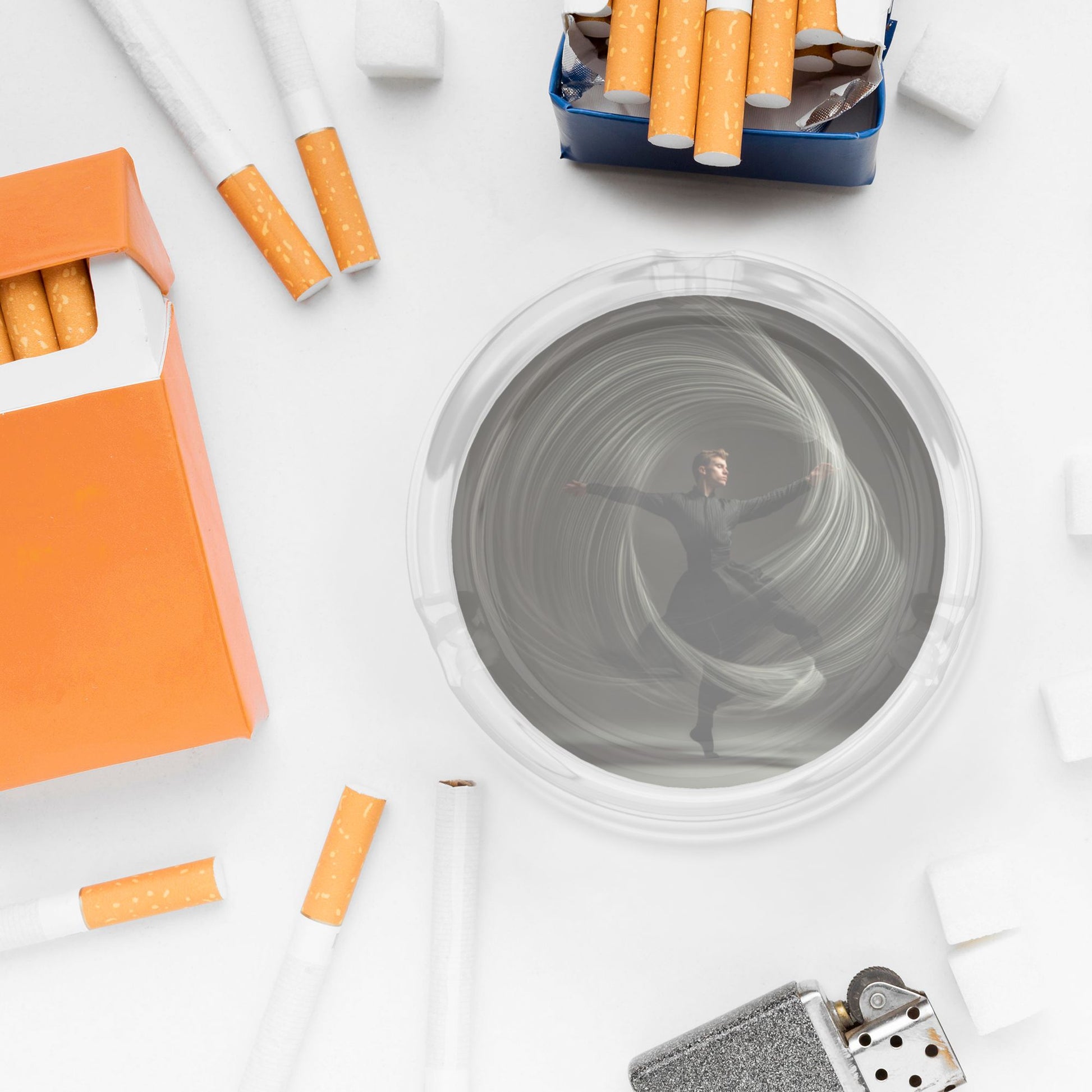 This round glass ashtray features the artistic scene of a dancer intertwined with light and shadow as its design highlight, combining functionality with a unique artistic style to add a flexible rhythm to the space: