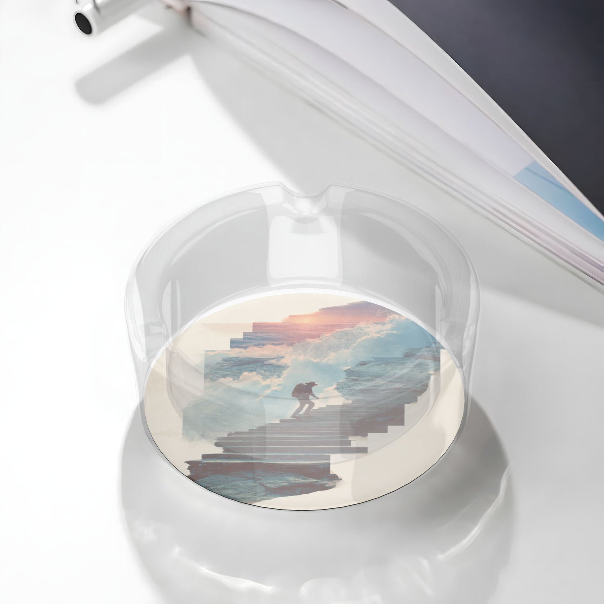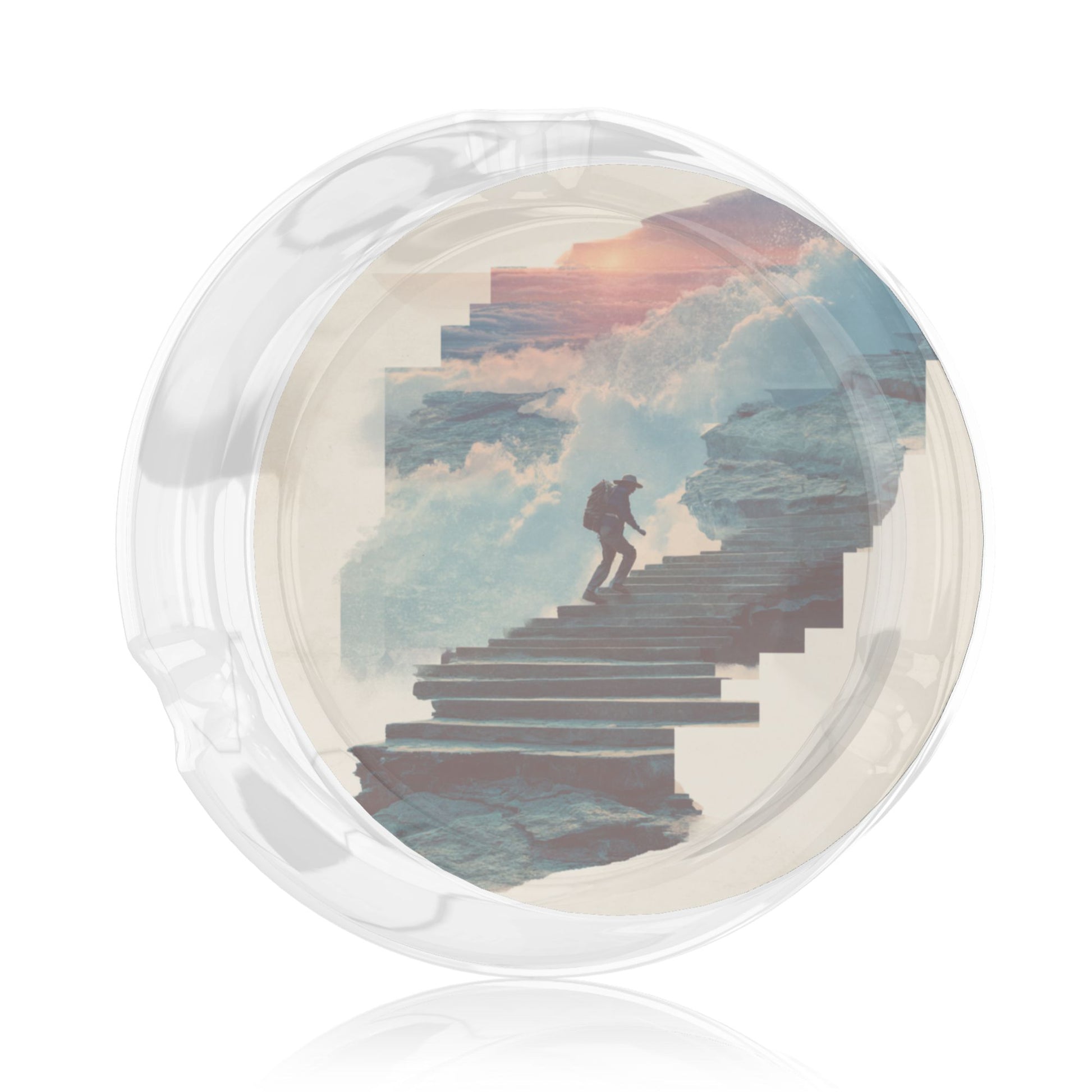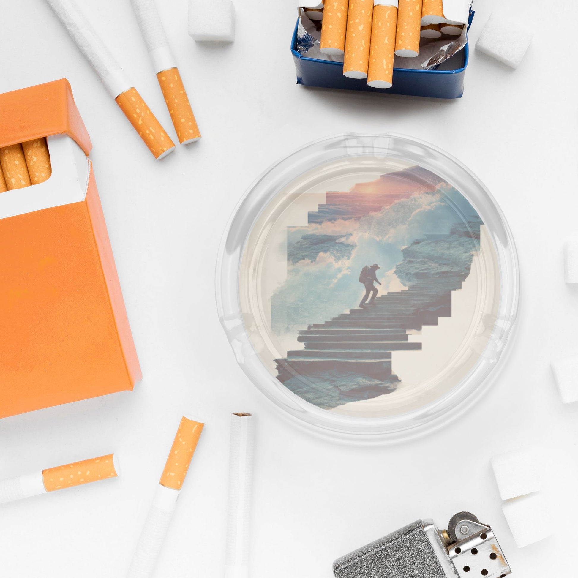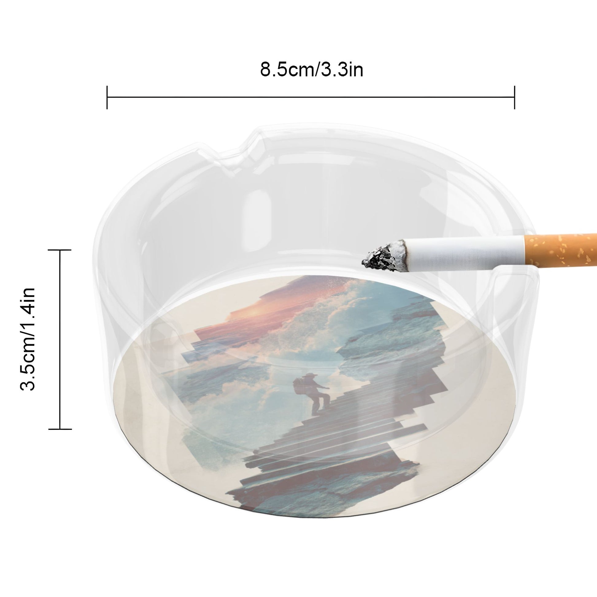 - Artistic Design:The bottom of the ashtray is printed with a unique landscape illustration, presenting a scene of a person climbing stairs accompanied by sea of clouds and sunset, as if sealing a romantic travel fragment on the desktop. Placed in scenarios such as the living room, bedroom, office, or restaurant, it is not just a tool for cigarette butt storage, but can also serve as a desktop decoration conveying the spirit of exploration and artistic beauty. It is suitable for spaces with modern minimalist, literary and fresh styles, injecting a tranquil and distant artistic conception into the environment.