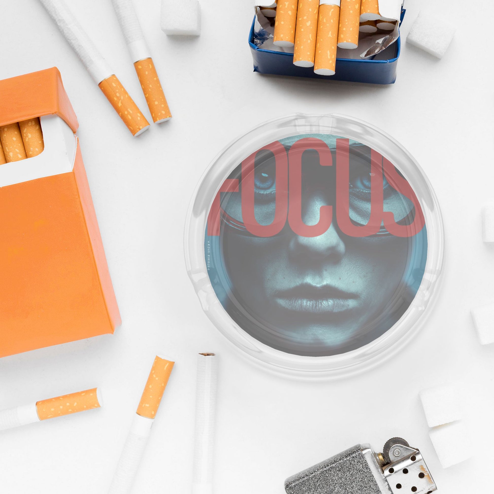 Creative Portrait Printed Round Glass Ashtray, Home & Office Trendy Decor Ashtray (Diameter 8.5cm)