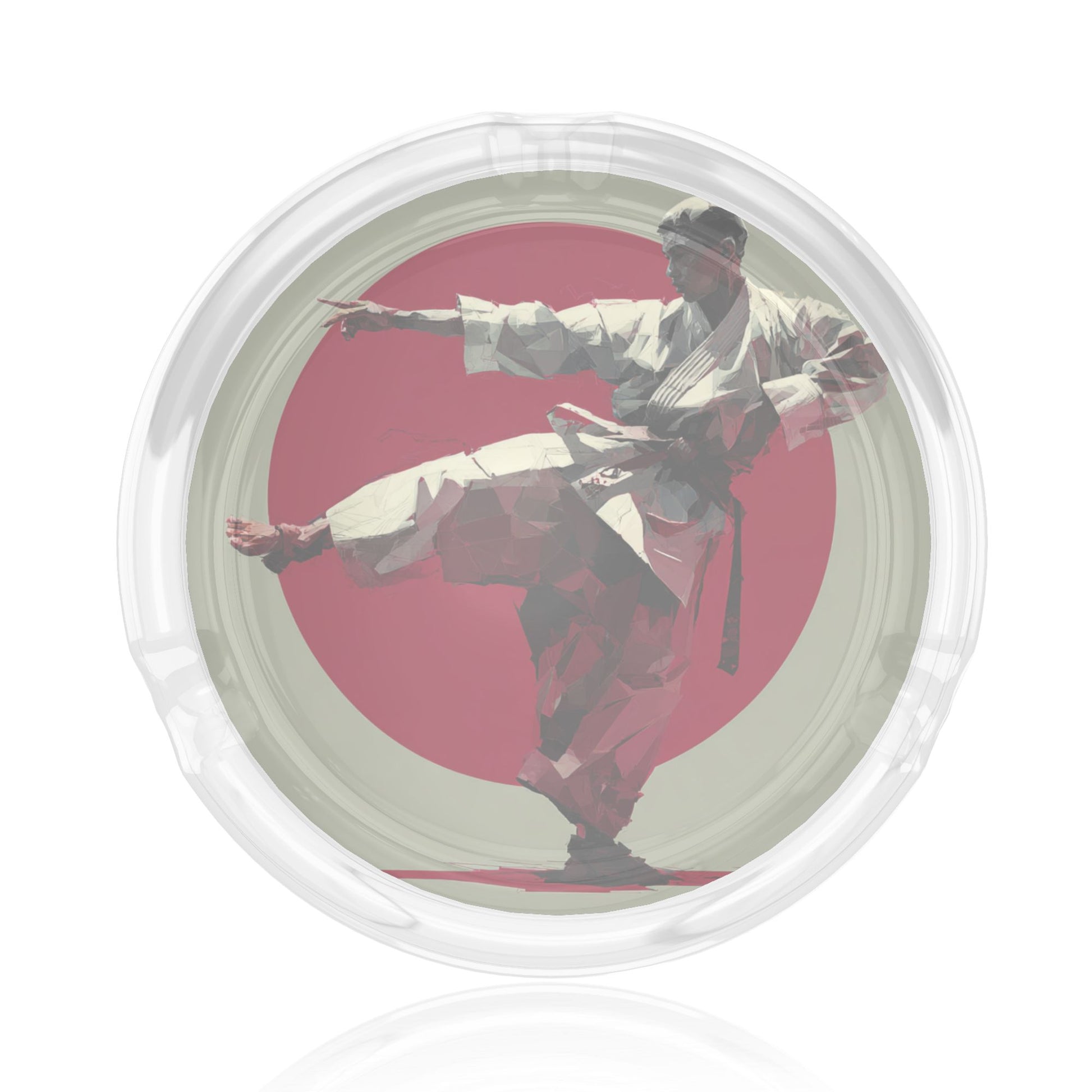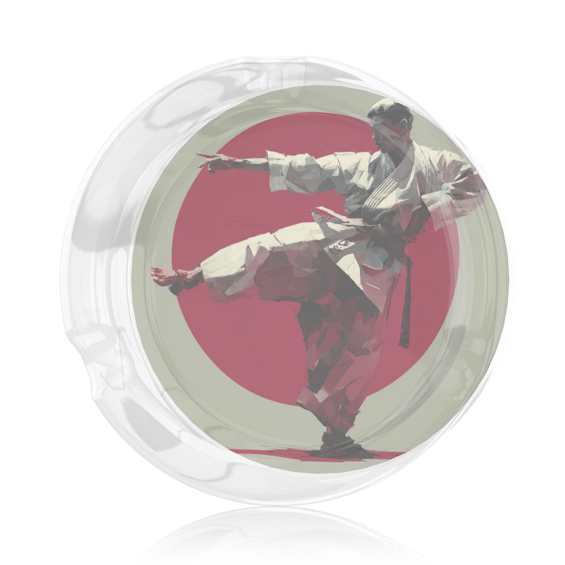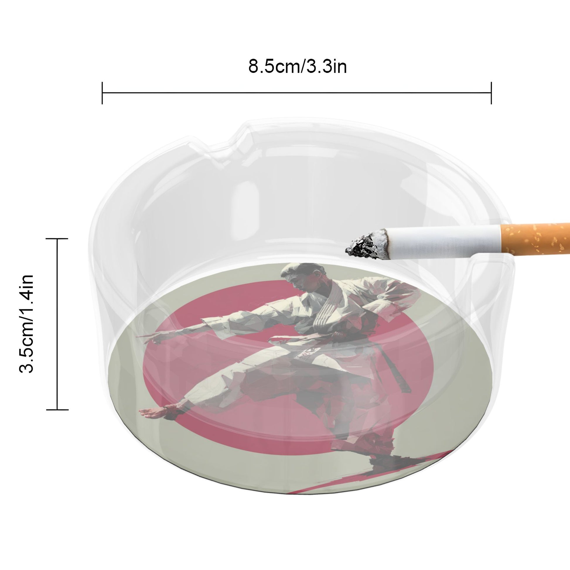 Martial Arts Printed Round Glass Ashtray, Creative Home & Office Decor Ashtray (Diameter 8.5cm)