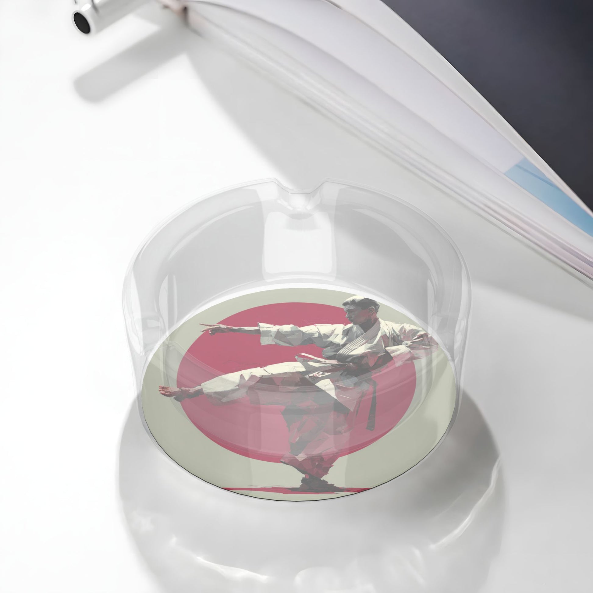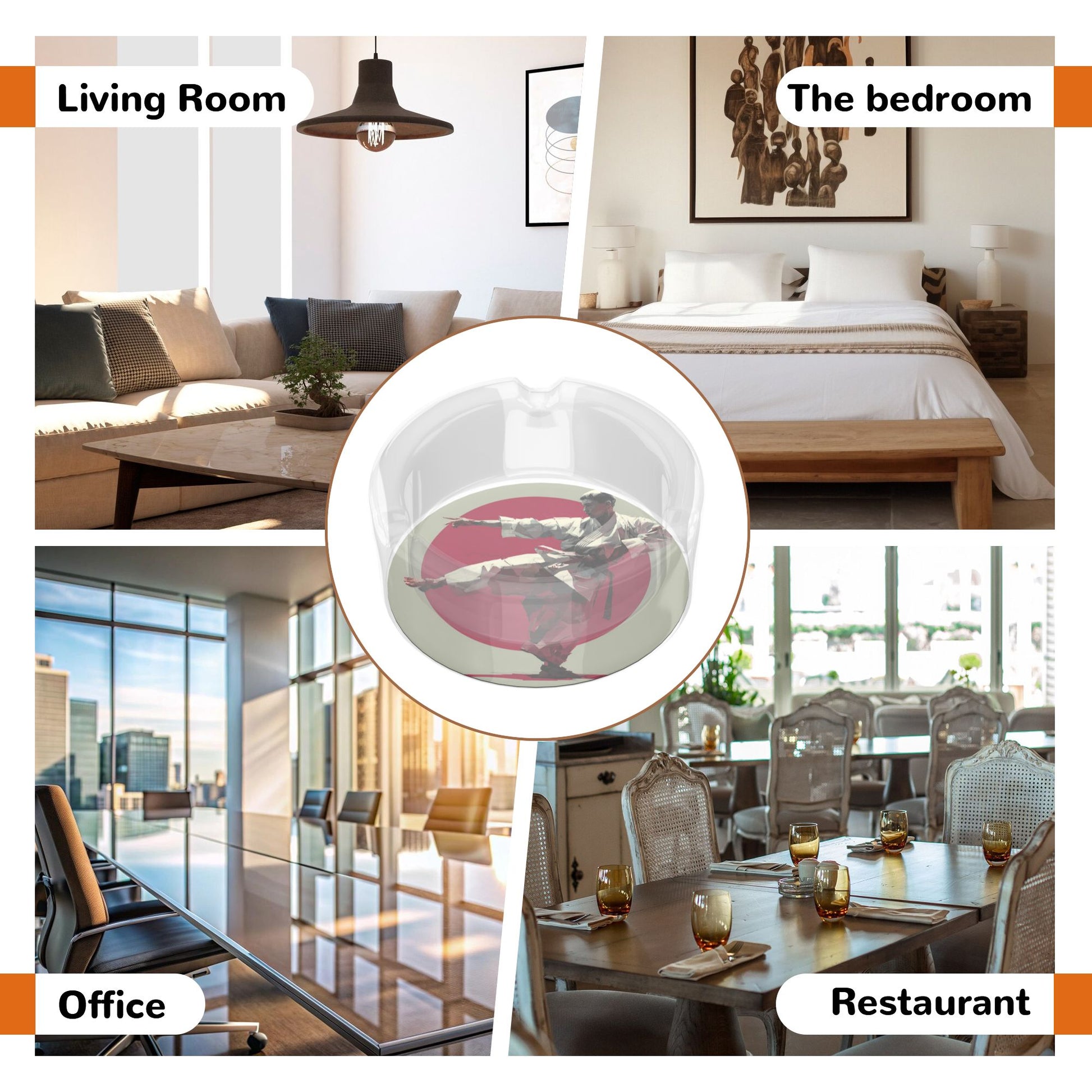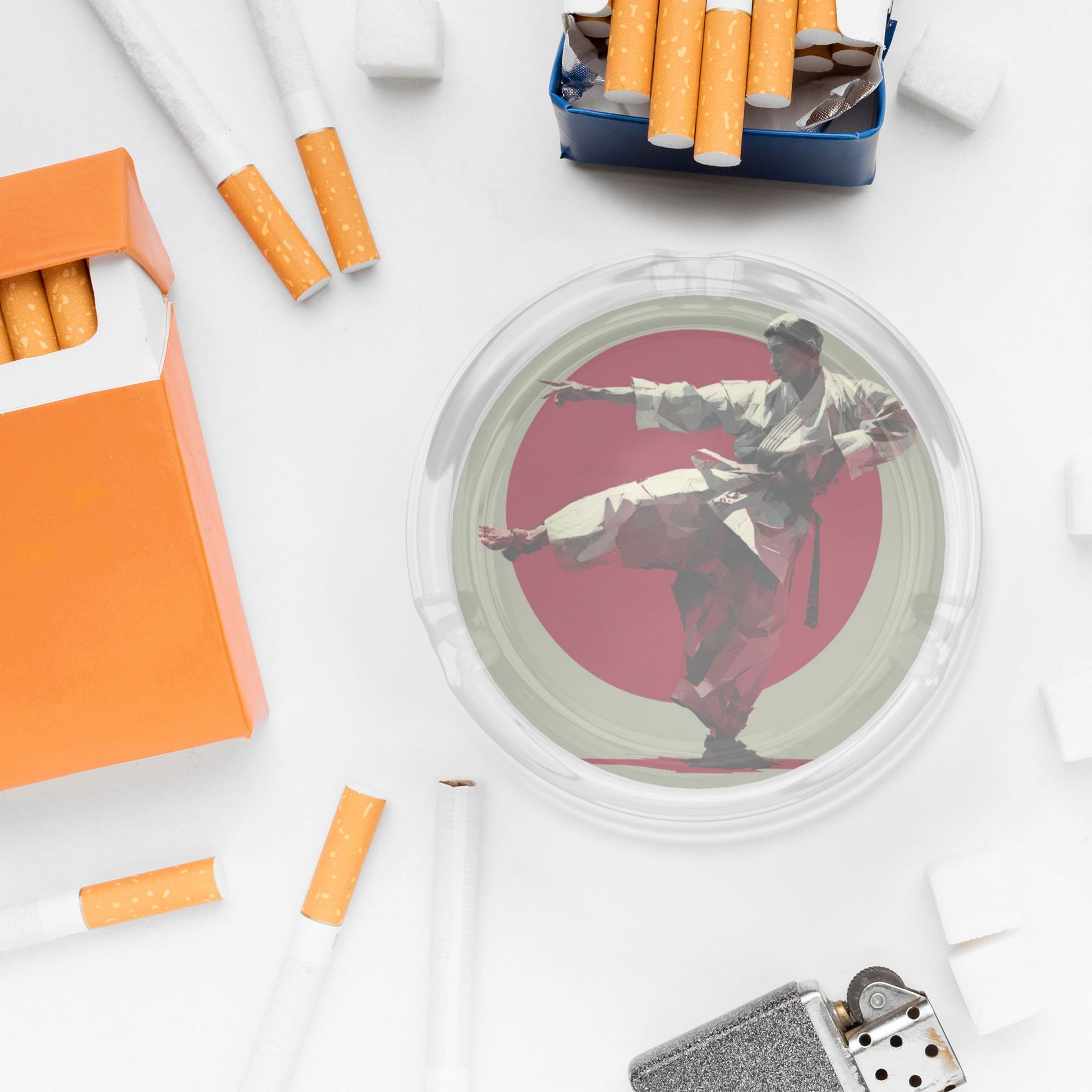 Martial Arts Printed Round Glass Ashtray, Creative Home & Office Decor Ashtray (Diameter 8.5cm)